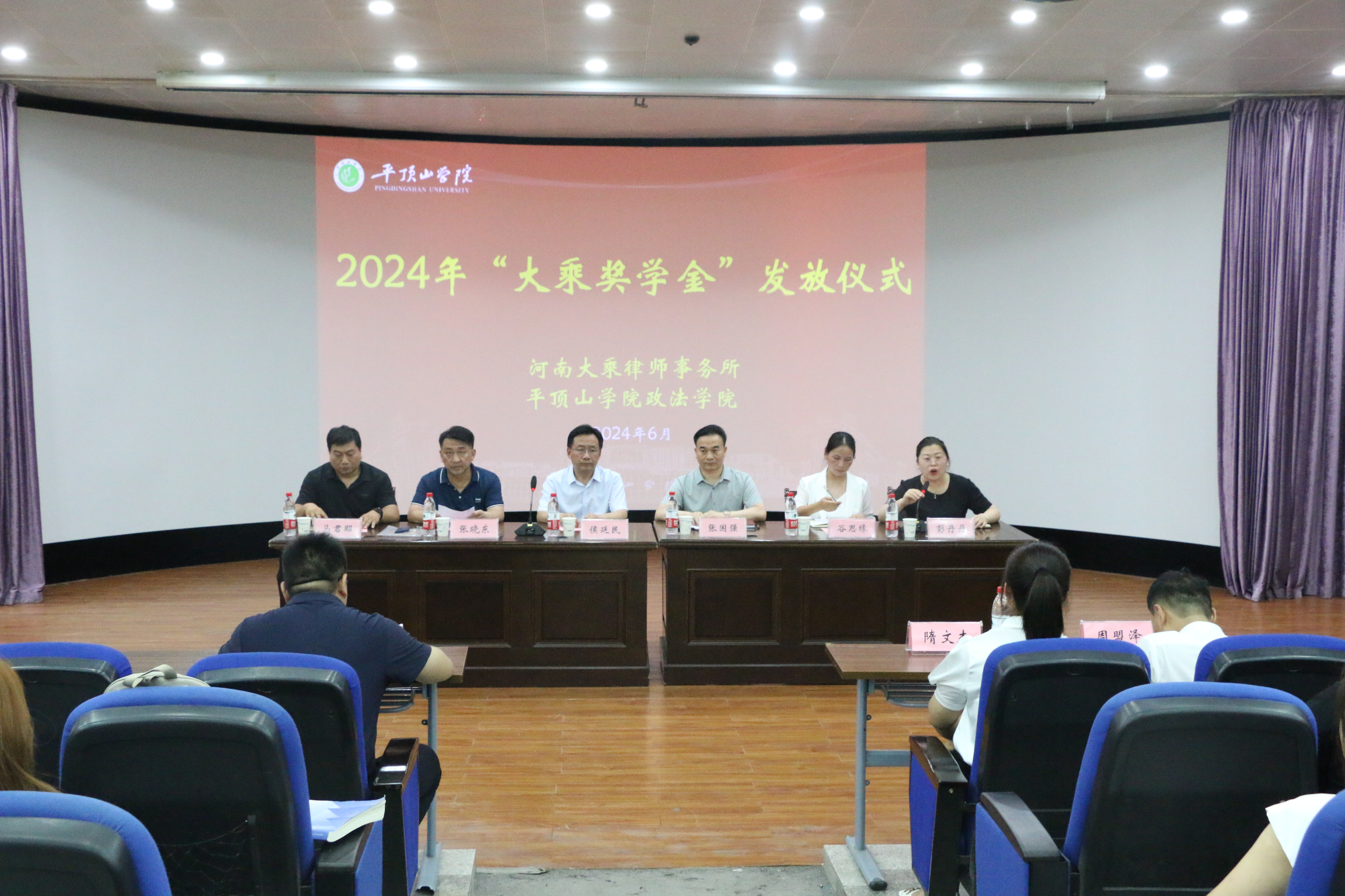 6月11日下午,william威廉在2106会议室举办第三届“大乘奖学金”颁奖仪式。校党委副书记侯延民,河南大乘律师事务所主任张国强,律师代表隋文杰、周盟泽,william威廉班子成员、教师代表,全体毕业生同学及非毕业班学生代表参加活动。活动由william威廉副院长彭丹丹主持。