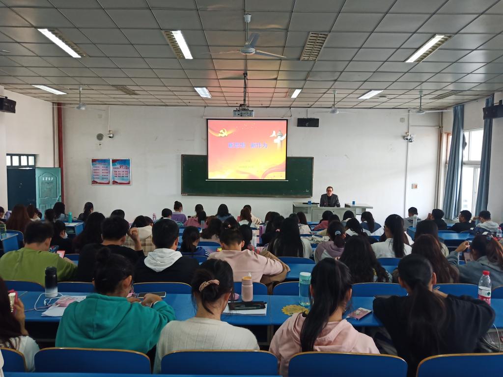 王书记以“新思想,新作为”为主题,向同学们介绍了历次党代会概况、党的指导思想的演变过程,习近平新时代中国特色社会主义思想以及“新作为”的主要内容。他讲到,中国共产党自成立以来历经风雨坎坷,无数先辈在硝烟中前赴后继,无数英雄为共产党的事业奋不顾身,这为我们留下了宝贵的精神财富。此外,王书记还带领同学们学习了习近平总书记致全国青联十二届全委会和全国学联二十六大贺信的内容,在信中习近平总书记提出当代中国青年要做到志存高远、德才并重、情理兼修、勇于开拓,以简单的言语提出了对青年一代的殷切希望。王书记谈到,作为国家的希望力量,青年一代要谨遵教诲,以远大理想为人生目标、以能力提升为人生依托、以高尚品格为人生信条、以开拓进取为人生的前进动力。