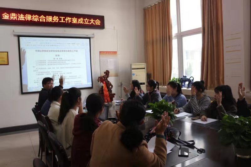 据悉,“金鼎法律综合服务工作室”是广大法学专业学生理论联系实践的重要平台,其目的是帮助广大学生增强法律实务水平,引导和规范学生参加各类法律公益活动来服务于地方和社会。工作室的工作内容主要以“法律咨询、法律文书写作、案例讨论、庭前准备、法律援助、普法宣传”等公益活动为主,旨在帮助广大法学专业学生在服务地方经济发展中历练提升和成长,不断奉献社会和实现人生价值。