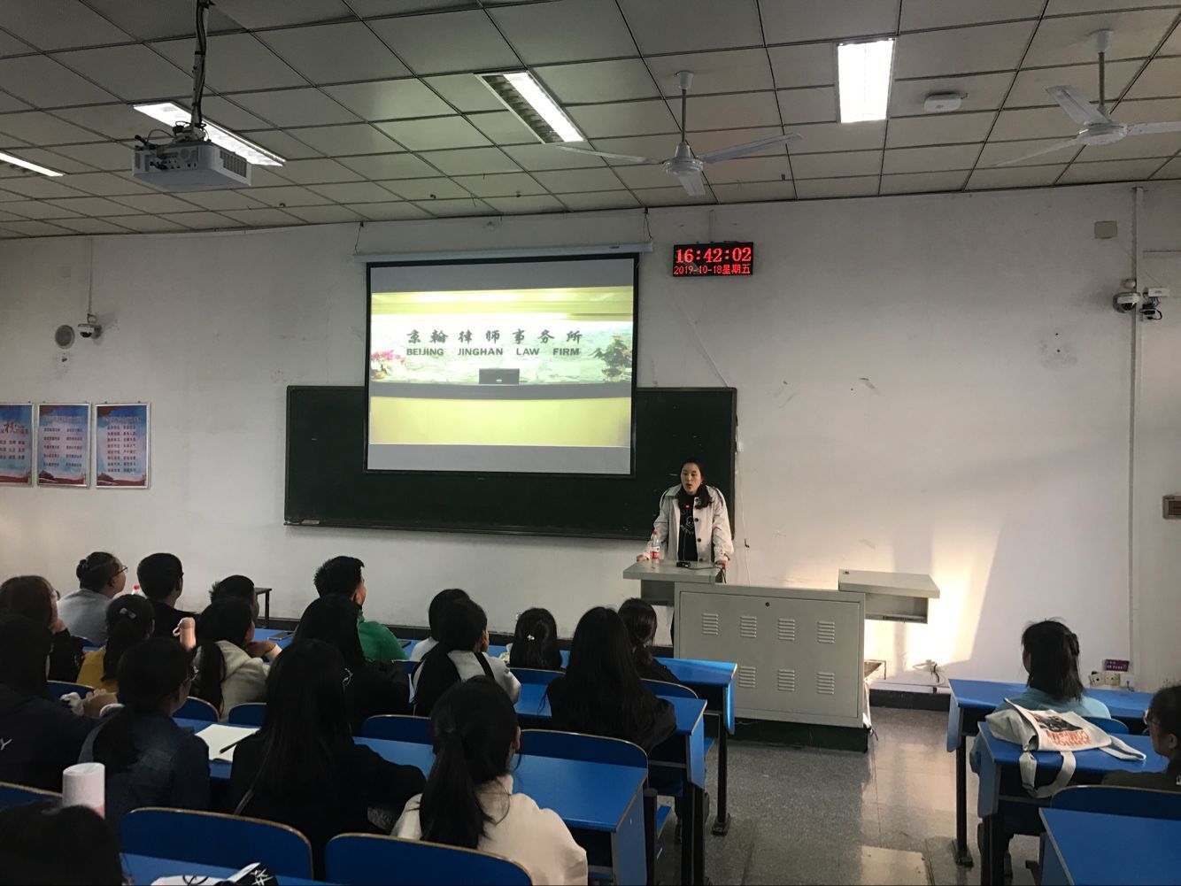 随后,校友代表北京京翰律师事务所律师孙洁、创业典型郑州中博健康产业集团山东区总经理赵高成分别为学弟学妹做了法律实务、创业感悟为主题的报告交流会,分享了自身经历和成就,同学们从优秀校友身上学习到许多闪光点,也学习到了课堂以外的就业与创业的经验。