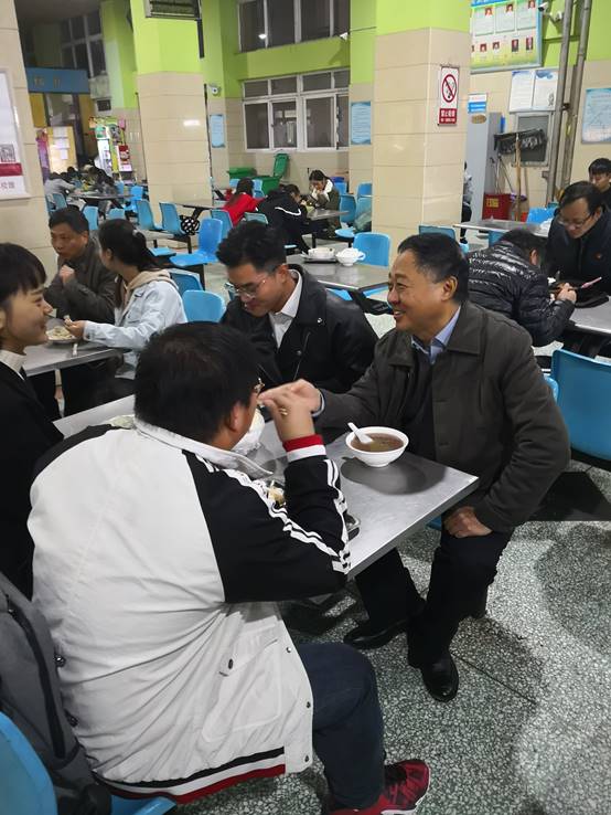 为深入学习贯彻党的十九大精神,落实全国、全省高校思想政治工作会议精神,进一步深化大学生思想政治教育工作。11月29日晚,WilliamHill中文副校长杜伟在联系院系党政负责人的陪同下,走进餐厅与学生一道共进晚餐,共同聆听学生心声,关心学生成长。