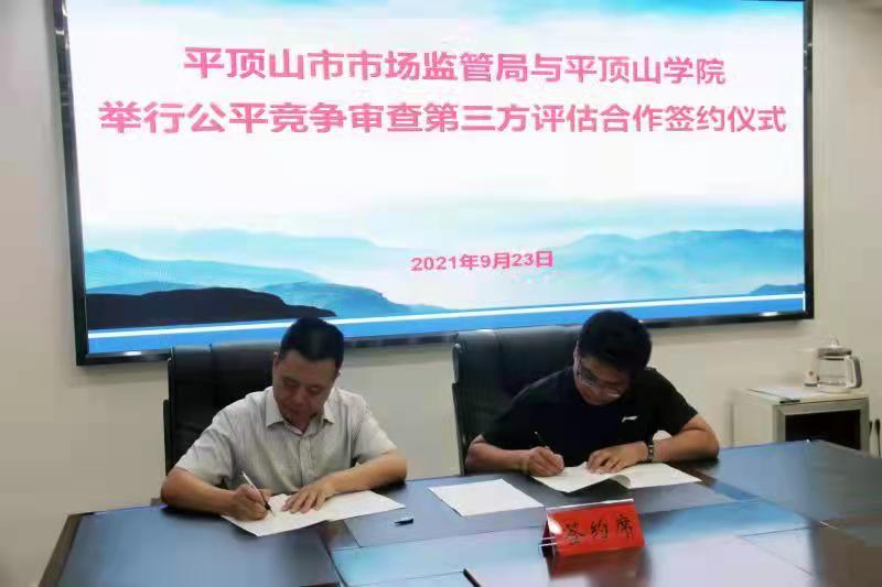 9月23日下午,我院与平顶山市市场监督管理局就公平竞争审查评估工作达成合作意向,并签订合作协议。william威廉副院长段贞锋、评估团队代表彭丹丹、李兵与市场监督管理局党组成员、副局长常鲁军、反垄断科科长杨东洲等参加活动并签约。