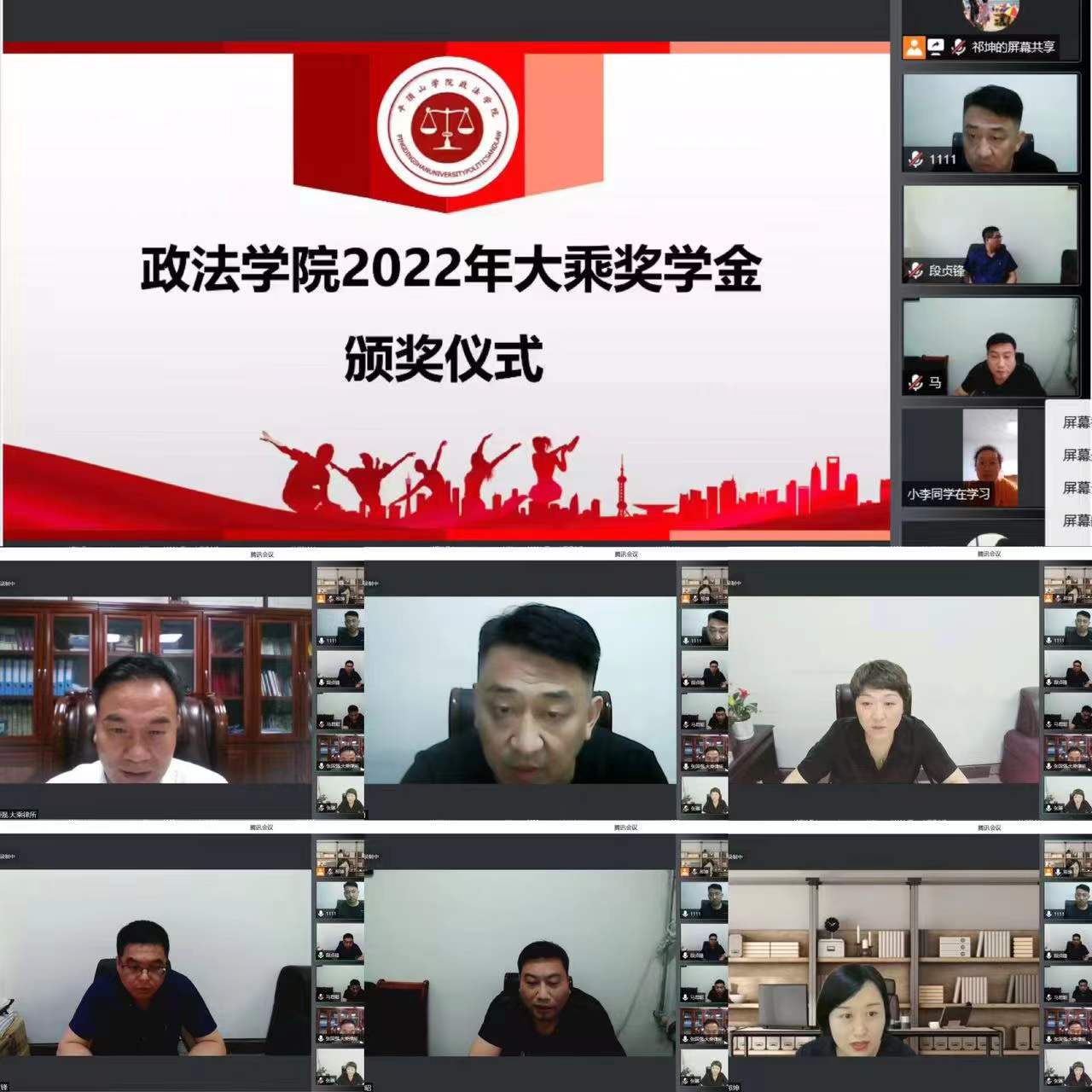 6月6日晚上19点30分,william威廉首届“大乘奖学金”颁发仪式通过线上会议形式举行。“大乘奖学金”设立人、河南大乘律师事务所主任张国强,william威廉党政班子成员、教师代表及获奖学生代表参加会议,会议由william威廉副院长段贞锋主持。