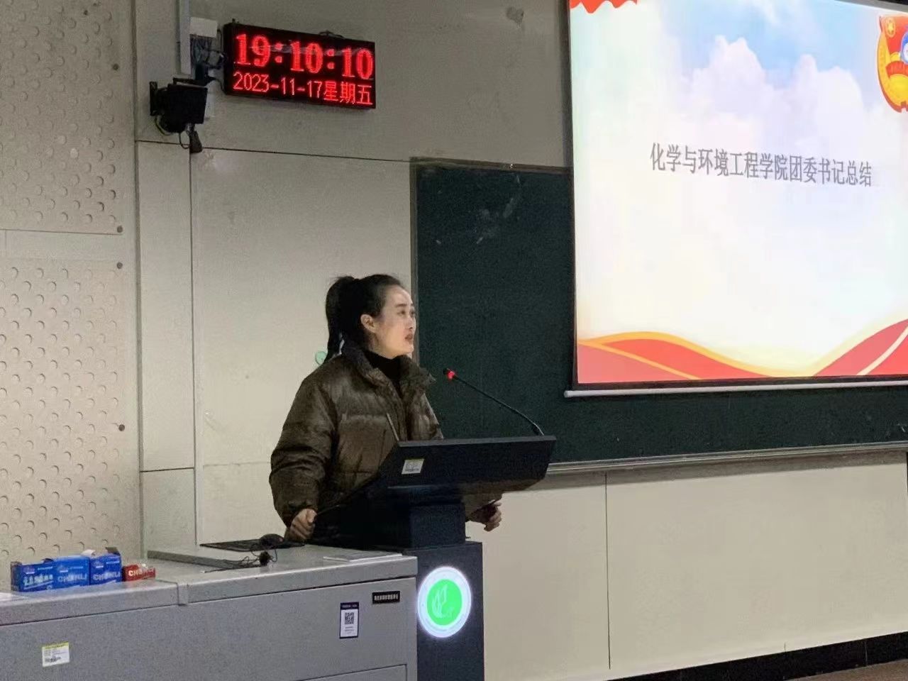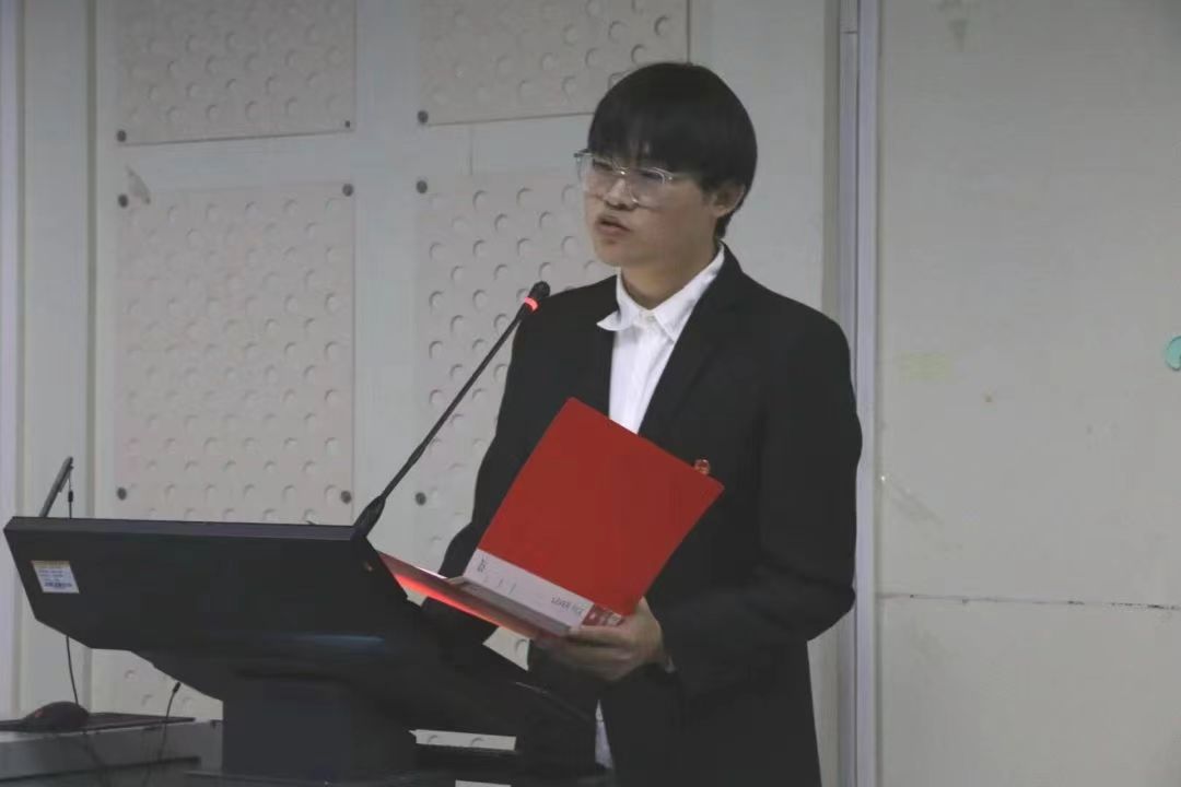仪式第五项,化学与环境工程学院团委书记史小倩总结发言。她指出,团课培训可以引领广大同学坚定不移听党话,矢志不渝跟党走。作为新时代的新青年,要不忘党组织寄予的厚望,要以实现中华民族伟大复兴为己任,增强做中国人的志气、骨气和底气,不负时代,不负韶华,不负党和人民的殷切期望。