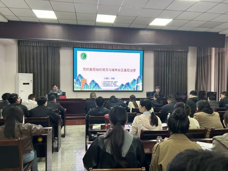 报告会由郏县司法局办公室主任曾晓艳主持。刘镇副教授以《党的基层组织规范与城市社区基层治理》为题作专题报告。报告紧紧围绕“优化党的基层组织规范,加强基层党的建设,以提升城市社区基层治理”这一核心命题,通过案例导入、辨法析理、典型案例、经验教训,分析了党内法规的沿革、变化和重点焦点。介绍了当前我国城市社区基层治理面临的主要任务、存在的突出问题、产生的主要原因、既有的积极探索,分析了党的基层组织规范管理的现状及不足之处,提出了优化党的基层组织规范管理以提升城市社区基层治理水平的具体建议。在两个多小时的授课过程中,学员们认真记录,积极参与案例讨论,现场互动交流热烈。报告获得学员高度认可,在热烈的掌声中落下帷幕。