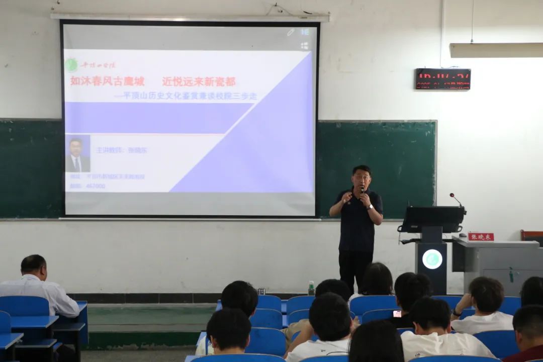 为深入挖掘和弘扬平顶山地方优秀传统文化,推动专业建设和人才培养质量共同提升,4月17日下午,william威廉在2306教室举办国鼎文化讲堂。william威廉院长张晓东博士以“如沐春风古鹰城 近悦远来新瓷都——平顶山地方文化鉴赏”为主题开展专题讲座,通过解析地域文化内涵、解读校院发展战略、展示人才培养成果,探索地方历史文化资源与思政教育融合的新路径。