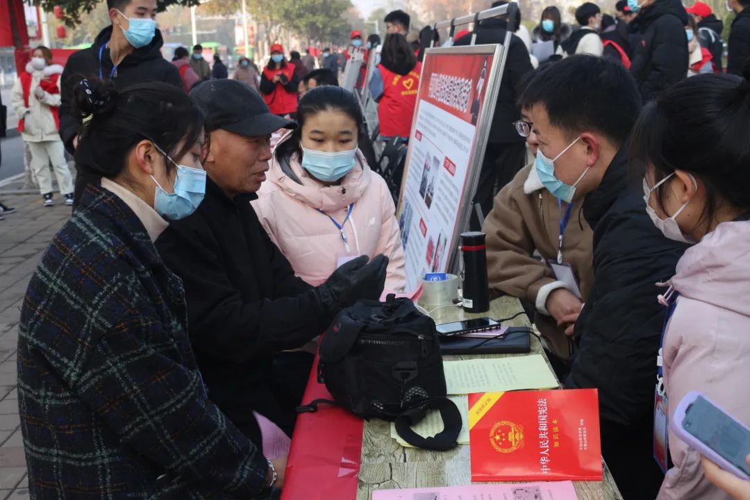 当天上午,我院师生代表在平顶山市鹰城广场、我校扇形广场通过摆放展板、发放法律知识传单、提供法律咨询服务、举行“礼赞宪法”签名活动等方式进行法治宣传,为广大市民、同学们普及法律知识,增强法治意识。