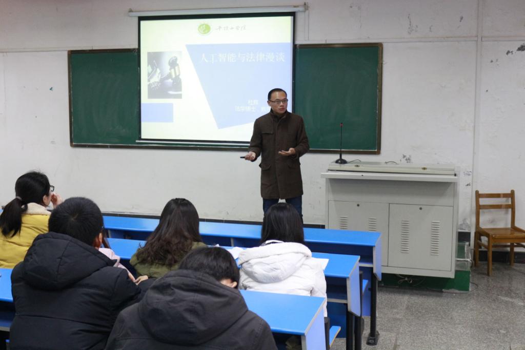 在我校“宪法宣传周”活动开展之际,12月7日晚,由学工部主办,william威廉承办的国鼎文化讲堂“人工智能与法律漫谈”在1307教室开讲。william威廉副院长、教授杜辉为我校百余名学子带来了一场精彩的主题讲座。