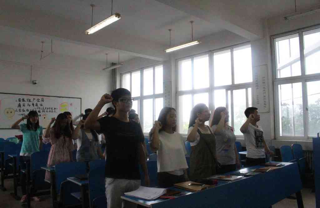 活动开始后,助学贷款学生负责人黄晓彦同学带领大家进行宣誓,与会全体学生举起右拳,庄重严肃,声音洪亮。郑重承诺并宣誓要“信守贷款承诺,认真履行合约,按时偿还贷款,绝不拖欠本息,珍惜个人信用,维护母校声誉,感恩党和国家,努力回报社会,时刻牢记校训,终身诚信做人,请母校放心,请社会放心。”|最后,由助学贷款学生负责人黄晓彦做了相关总结,并强调要做具有诚信美德并能为建设诚信社会做贡献的大学生。