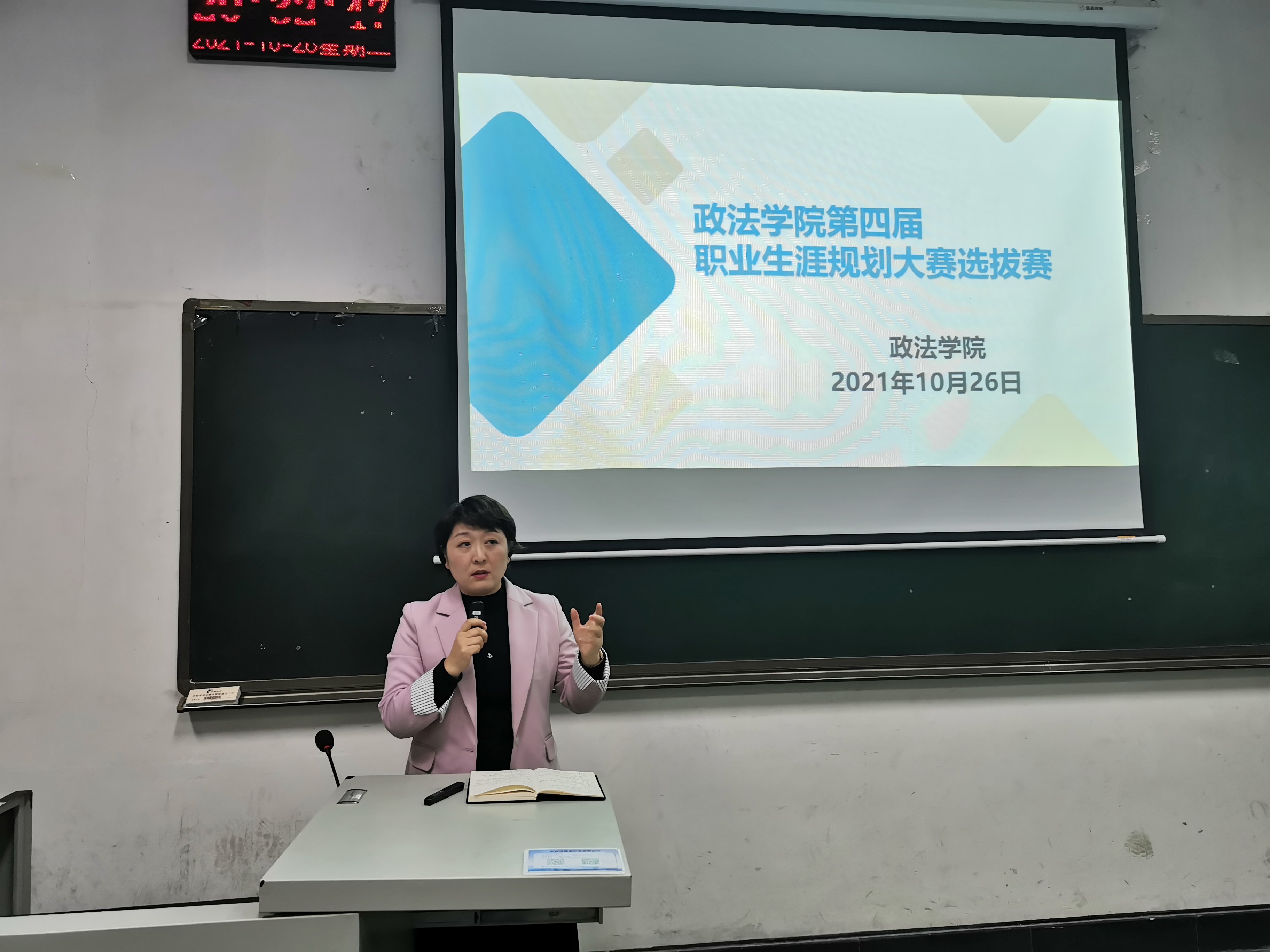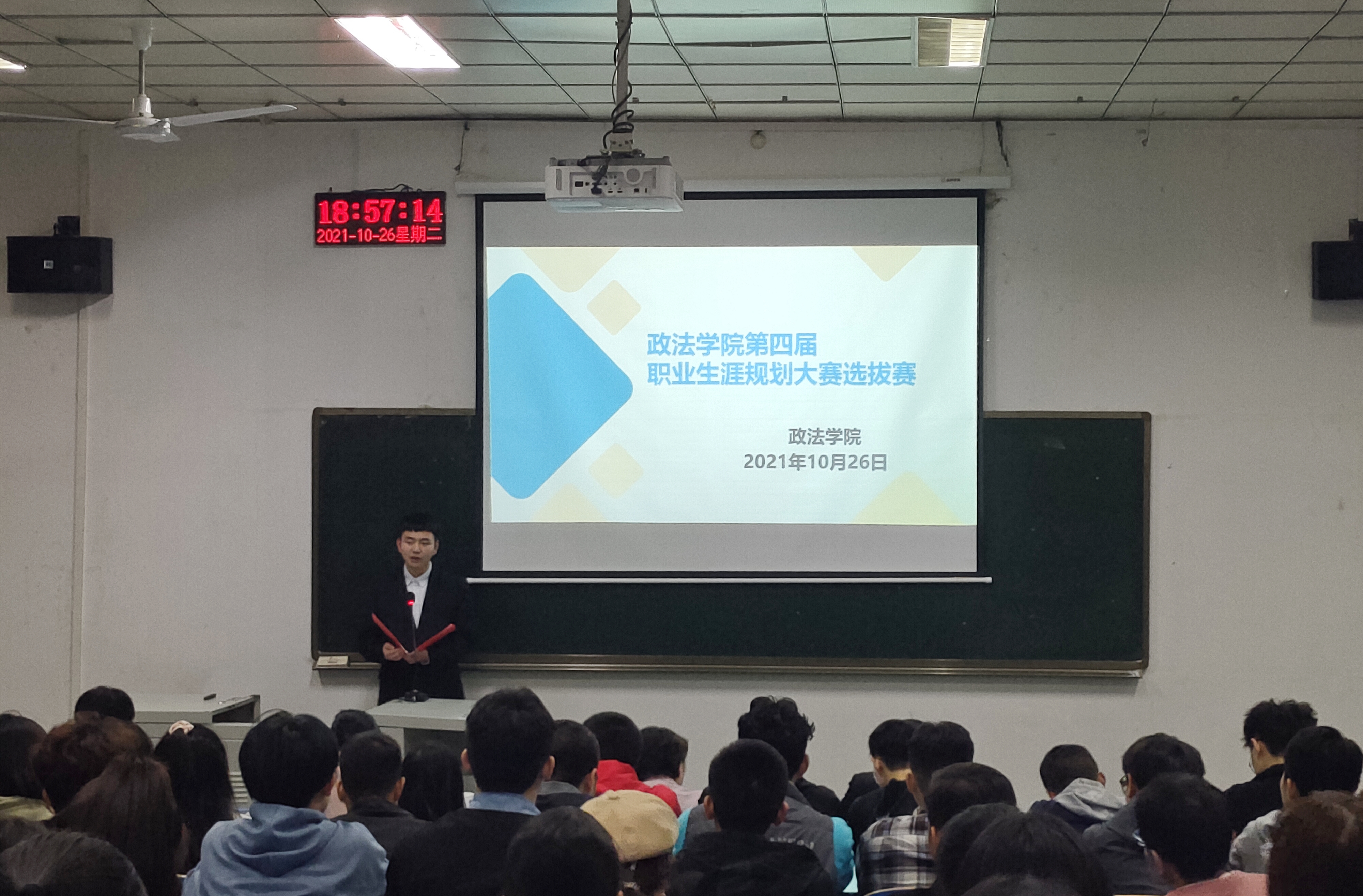 为切实增强大学生的职业生涯规划意识和就业意识,引导我院学生合理规划大学学习与生活,提高实践能力、创造能力和就业能力,树立正确的成才观、择业观、就业观和创业观,全面推动院系毕业生高质量就业创业,10月26日晚,william威廉于1206教室举办了第四届大学生职业生涯规划大赛选拔赛。学院党委书记张琳、党委副书记祁坤、组织员赵明跃、团委副书记马延明出席比赛并担任评委,学院2021级全体同学观看了比赛。