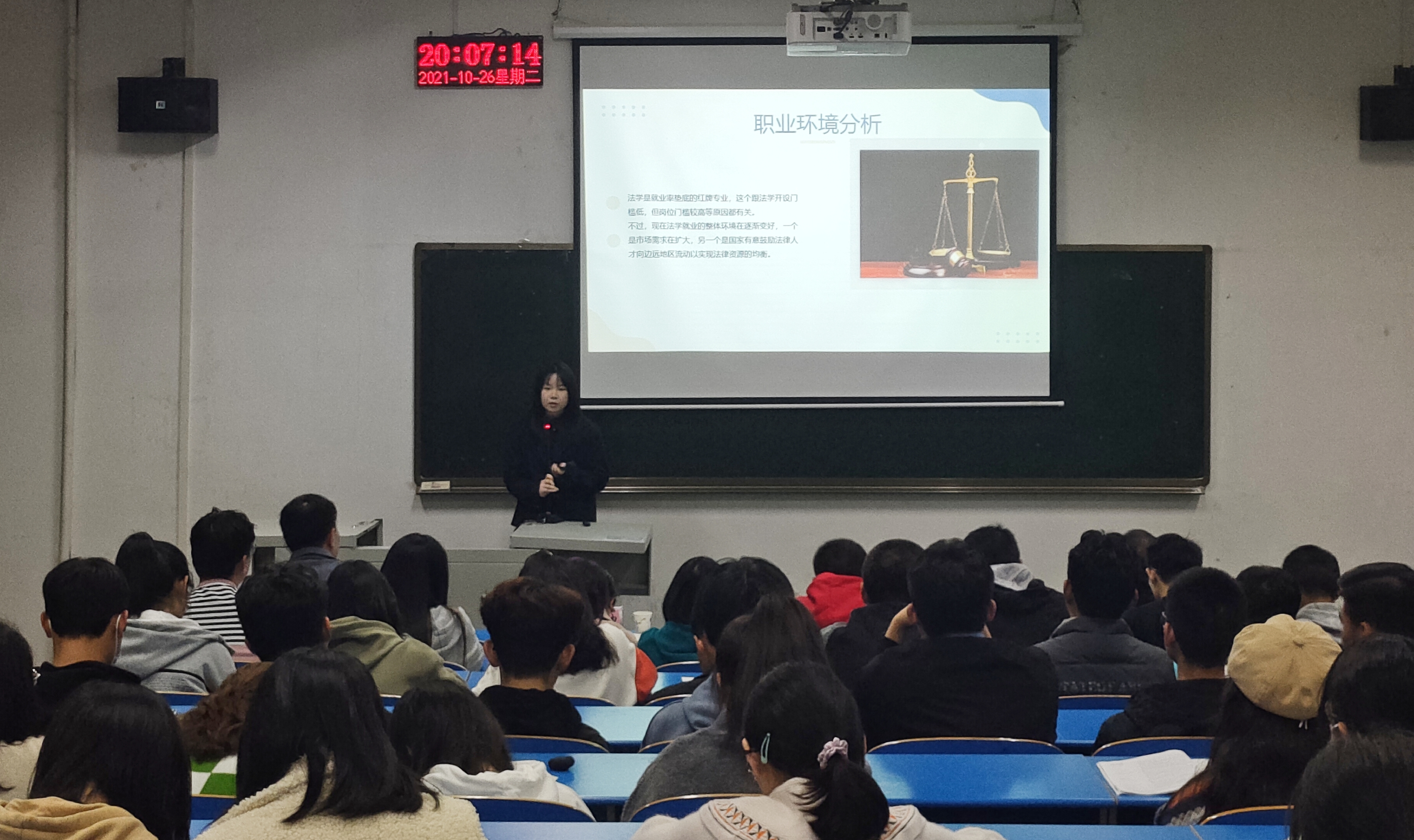 此次选拔赛以“筑职业生涯梦,划七彩人生图”为主题,同学们踊跃报名,共有17位选手参赛。比赛内容包含撰写《职业生涯规划书》、PPT现场展示、回答评委提问三个环节。选手们结合自身实际,运用专业知识,从自我认识、行业分析、职业认知、行动策略、职业道德等方面阐述了自己的人生理想和生涯前景。他们用明确的职业目标、清晰的规划路径和赤诚的理想情怀展示了政法学子的风采,给现场评委和观众留下了深刻印象。