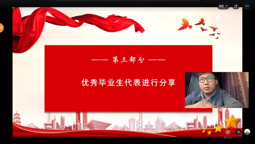 最后,william威廉党委书记张琳对本次会议进行总结讲话,希望各位同学能够牢记学长学姐分享的详细而实用的经验,以优秀学长学姐为榜样,在大学四年放飞梦想、砥砺前行。“追梦需要激情和理想,圆梦需要奋斗和奉献。”本次线上交流会的成功召开,使我院青年学生对大学四年的学习历程和未来的就业方向有了更清晰的认识与规划,也有利于更加坚定同学们脚踏实地、知行合一、不负青春韶华的决心与信心。
