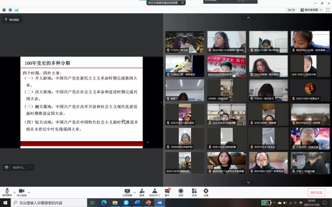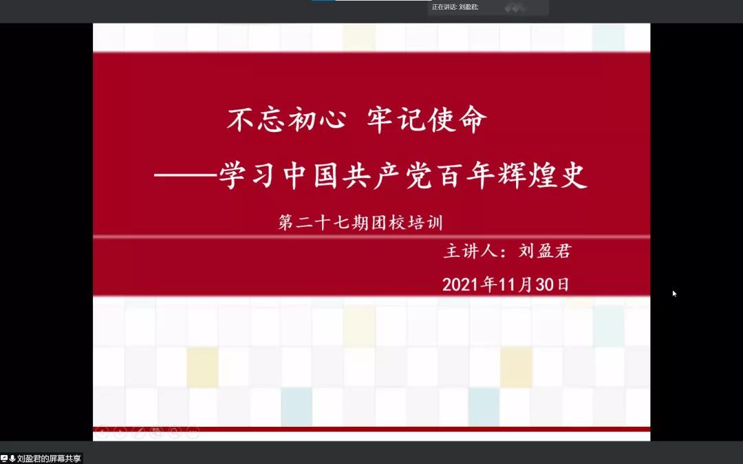 为加强团员们的思想建设,增强共青团的凝聚力、创造力,加深团员们对中国共产党党史的了解。11月30日,william威廉和化学与环境工程学院通过线上形式联合开展了以“不忘初心 牢记使命--学习中国共产党百年辉煌史”为主题的团课培训第四讲。william威廉辅导员刘盈君、william威廉和化学与环境工程学院177名团员参与此次团课培训。此次团课培训由刘盈君老师主讲。