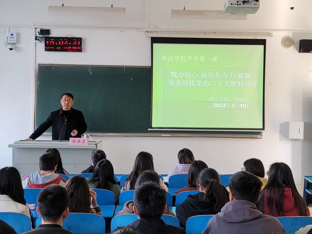 院长张晓东以“勠力同心、奋发有为,以崭新姿态迎接党的二十大胜利召开”为主题,为同学们深入解读了党的十九届六中全会重要的理论和现实意义,分析了为什么只有中国共产党才能带领中国人民取得革命胜利、为什么只有社会主义才是适合中国的道路。张晓东强调,政法学子要传承红色基因,弘扬爱国主义精神,涵养家国情怀,要用好党史这部丰富生动的教科书,从党的辉煌成就、艰辛历程、历史经验、优良传统中深刻领悟中国共产党为什么能、马克思主义为什么行、中国特色社会主义为什么好,努力成为堪当民族复兴重任的时代新人。