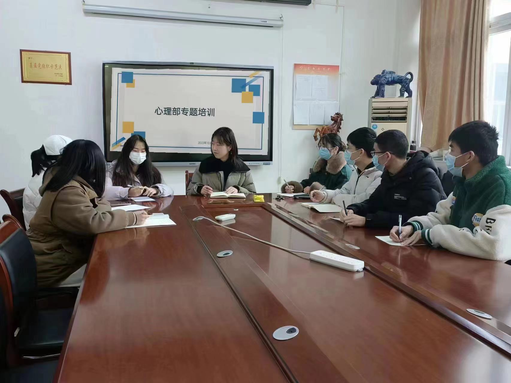 本次心理部培训会议顺利开展,有助于心理委员之间交流和学习,更好地服务学生,对于这学期工作有进一步了解,利于开展心理活动。为我院心理教育打下基础。