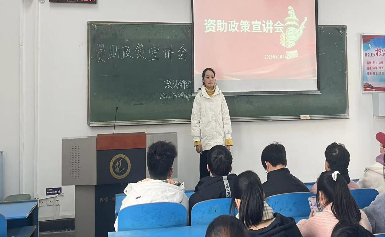 为做好学生资助政策宣传工作,让所有的学生知晓并了解家庭经济困难学生资助政策,我院开展了以“资助政策两节课宣传”为主题的宣讲活动,并于2022年10月14日16:00—17:30在1211、1212教室举办。会议邀请到学生代表李冬雪参与此次宣讲。