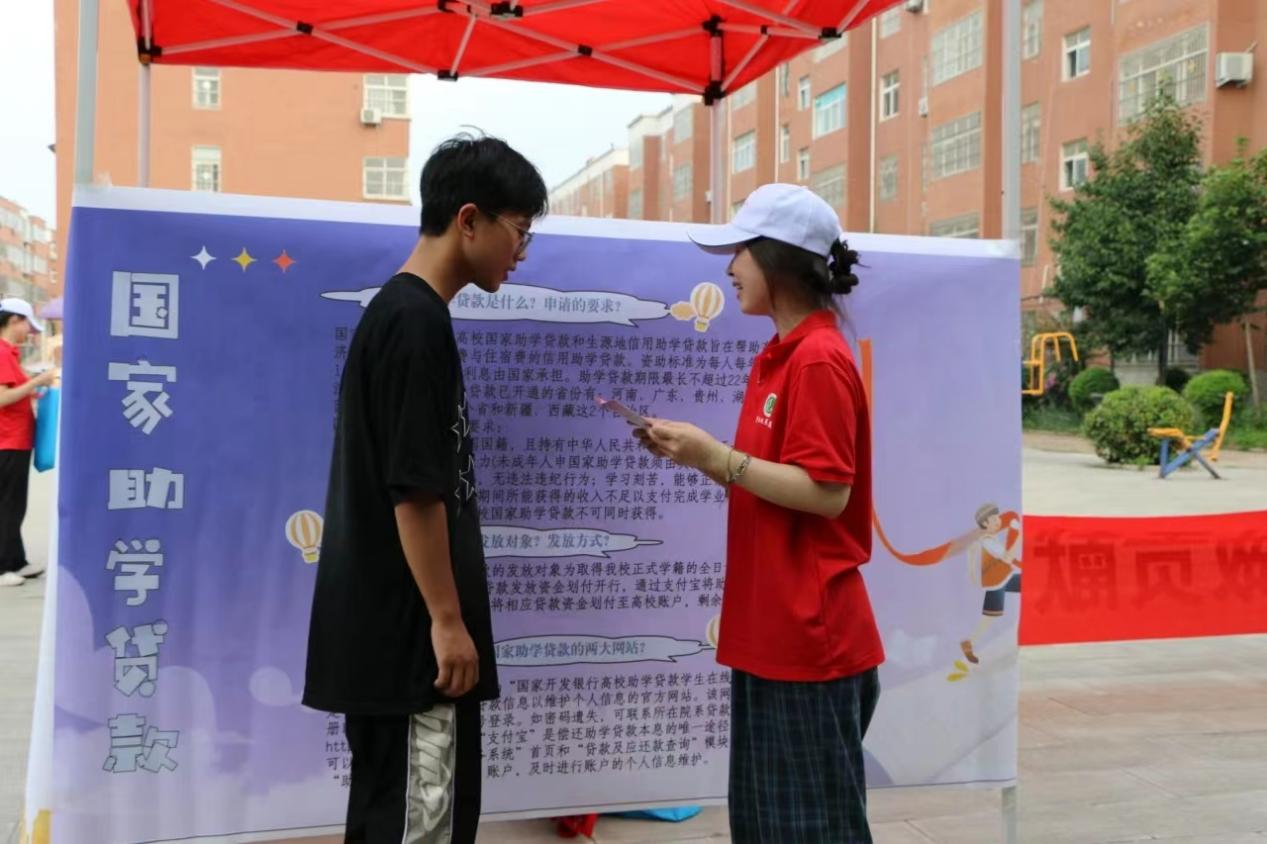 资助政策宣传大使走访了多家即将步入大学的高考毕业生家庭和在校大学生家庭,针对每家每户的特点详细讲解了高校助学贷款政策及征信知识。还以启动村内大喇叭召集家庭经济困难家庭,开展资助政策宣讲会、发放宣传手册、布置展板等方式,了解当地群众的具体需求和困难,详细介绍了高校助学贷款相关政策,使用简洁明了的流程图、操作图,分别将国家开发银行信贷政策、生源地信用助学贷款办理流程、助学贷款还款重要时点、还款类型、还款方式等内容进行了逐一讲解,强调了各项操作的注意要点和时间节点,同时为群众答疑解惑。通过这次宣传,当地群众对于国家助学贷款政策有了深入了解,并充分认识到了资助政策能够为家庭减轻经济负担,帮助求学路上有经济困难的学子顺利完成学业。