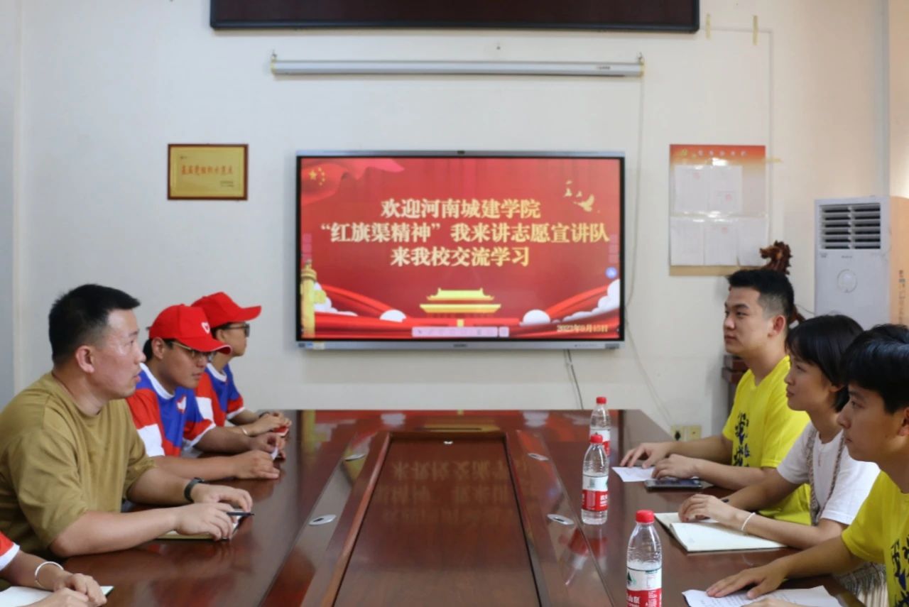 会议伊始,我校志愿宣讲队指导老师马延明首先对河南城建学院宣讲团队的的到来表示欢迎,并对我校红旗渠精神宣讲工作的前期准备、活动开展、取得成效等方面进行了汇报,同时,就下一步的宣讲工作安排进行了介绍。座谈会上,河南城建学院宣讲团队指导老师柴洁从宣讲实践经验、如何围绕自身专业开展实践活动等方面切入,就如何把红旗渠精神转化为推进教育高质量发展的生动实践进行了深入的讲解。双方就红旗渠精神对于当下年轻人所具有的指导意义展开了讨论和交流。