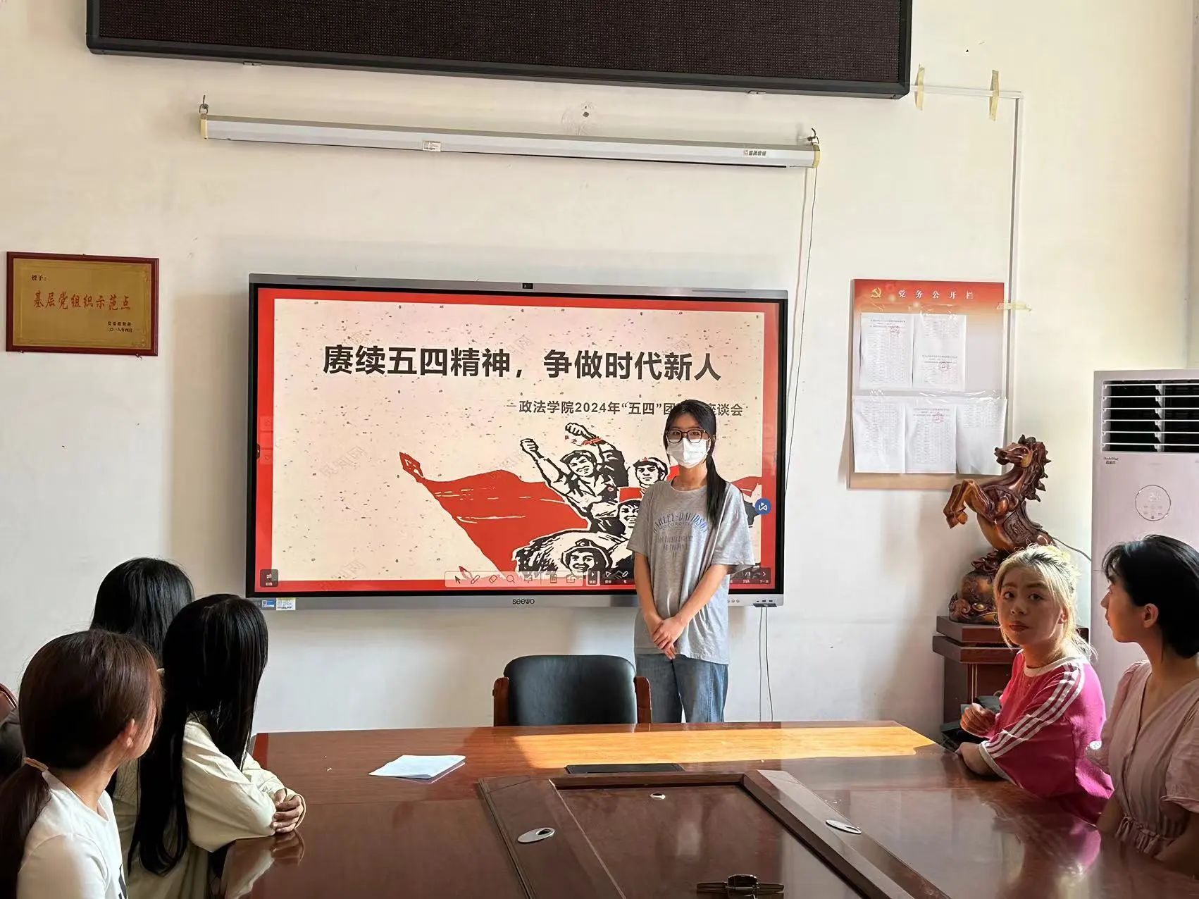 随后,2023级法学专业1班代表指出,个人理想应融入到国家理想之中,要勇于承担责任,做到将五四精神内化于心,外化于行。最后,2023级法学专业2班代表通过列举中国古代的科技文明成果让大家看到了中国青年源源不断的创新力,新时代青年更应弘扬好五四精神,为中华民族的伟大复兴贡献自己的力量。