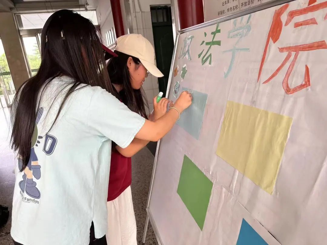 本次活动是在现场所提供的法条素材中选所钟爱的词语或句子在展板上进行组合和拼贴。活动中,同学们积极参与,通过挑选法律条文,并结合自己的创意,将原本枯燥的法律条文转化为一首首富有韵味的诗歌,展示出独属于法学生的浪漫。