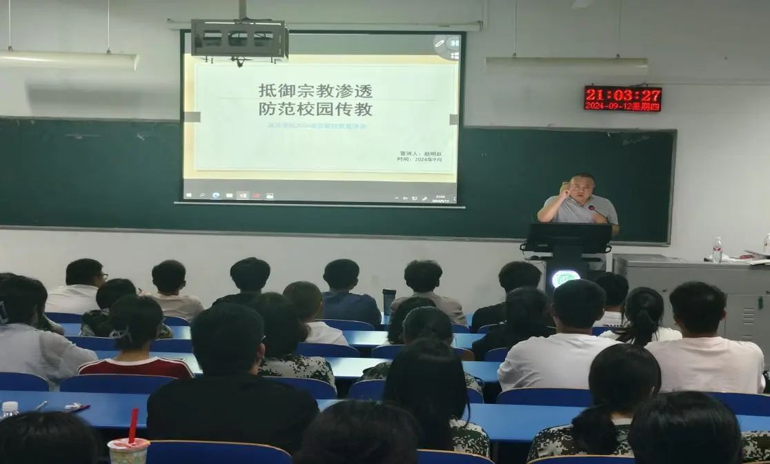 为增强2024级新生识别非法宗教、抵制非法宗教的能力,进一步净化校园文化。9月12日,william威廉开展了新生入学抵制宗教渗透讲座。此次讲座由william威廉辅导员赵明跃主讲,2024级全体新生参与本次讲座。