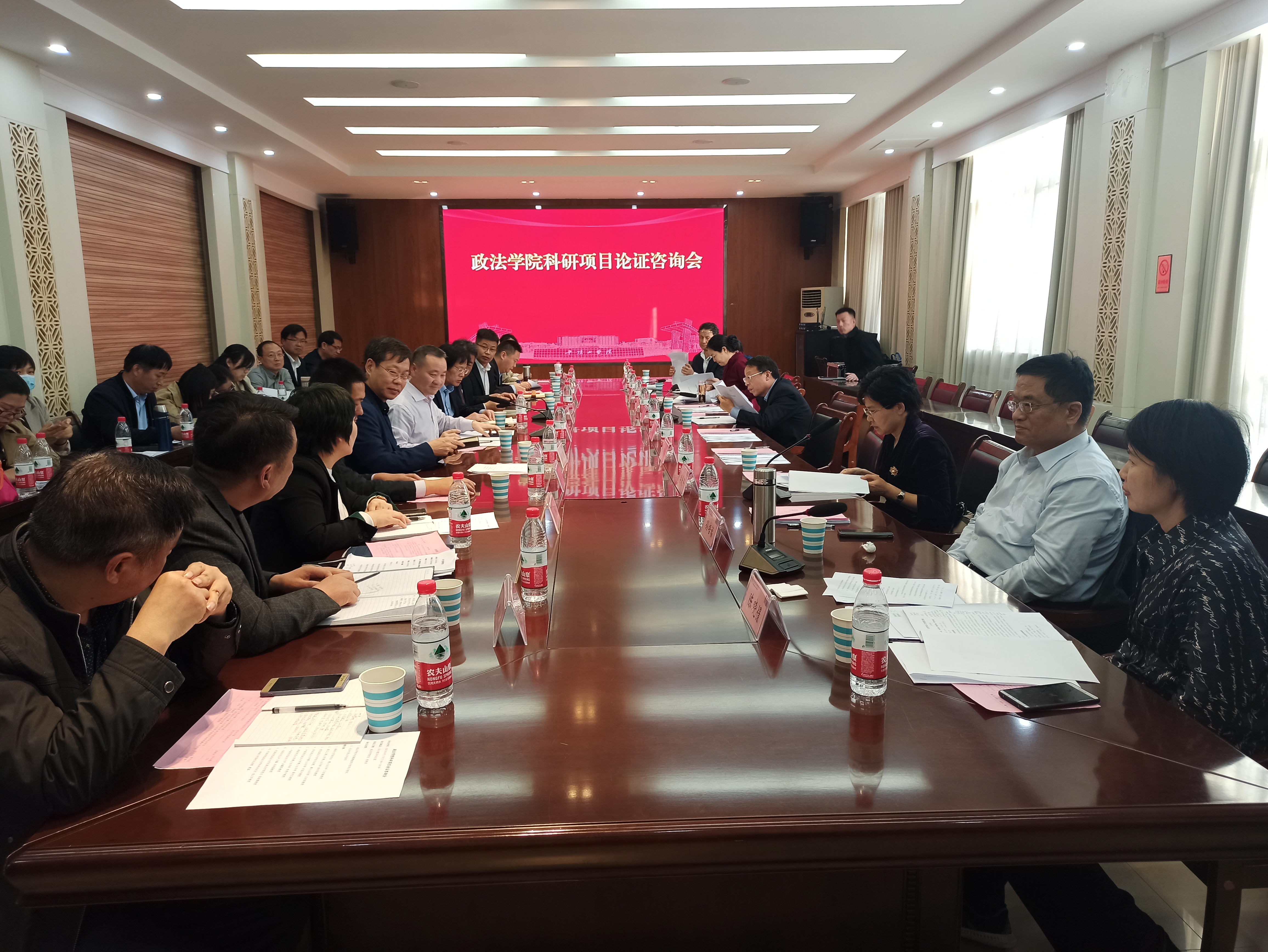 4月17日下午,我校邀请国内知名法学专家海南大学副校长、博士生导师王崇敏教授,浙江工商大学博士生导师徐祥民教授,西北政法大学校长助理、博士生导师汪世荣教授,华东政法大学博士生导师肖国兴教授,中南财经政法大学博士生导师高利红教授,湖南师范大学博士生导师李爱年教授,中南财经政法大学余耀军教授、《政法论丛》主编孙培福教授,河南财经政法大学民商法学院院长陈晓憬教授,河南财经政法大学科研处处长张义华教授,海南大学副校长助理熊磊一行11人到我校,举行科研项目论证咨询会。咨询会在办公楼329召开,我校党委书记华小鹏、副书记田建伟、部分职能部门负责人、法学专业教师代表、河南金年华律师事务所代表参加会议。会议由william威廉院长张晓东主持。