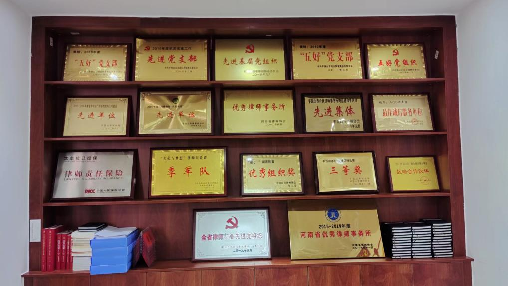 大乘律师事务所于2006年1月被平顶山市律师协会评为先进集体;2008年被平顶山市消费者协会评为“2007年度消费维权 共筑和谐”先进单位;2010年3月被平顶山市消费者协会授予“2009年度最佳诚信服务单位”;2011年3月被中共平顶山市司法局直属机关委员会评为“五好党支部”;2012年4月被河南省律师协会评为“优秀律师事务所”;2012年8月被共青团河南省委、省综治办、省司法厅评为“优秀青少年维权岗”;2012年6月被平顶山市司法局评为“2010-2011年度全市司法行政系统政风行风建设先进单位”;2012年-2015年连续三年被平顶山市司法局评为“优秀基层党支部”;2013年获得平顶山市司法局组织的“庆七一”演讲比赛第二名;2014年获得平顶山市司法局组织的律师辩论赛三等奖;2019年获得平顶山市司法局组织的律师辩论赛二等奖;2019年11月获得“2015-2019年度河南省优秀律师事务所”荣誉称号;2021年9月,河南大乘律师事务所主任张国强同志被司法部表彰为“全国优秀律师”。多年来,河南大乘律师事务所始终秉持捐资助学、培育优秀法律人才的理念,与高校法学院深度合作培养优秀法律人才,并持续为品学兼优的经济困难学生提供资助与实习机会,帮助他们顺利完成学业尽一份微薄之力,充分展现河南大乘律师事务所的人文情怀与社会责任。