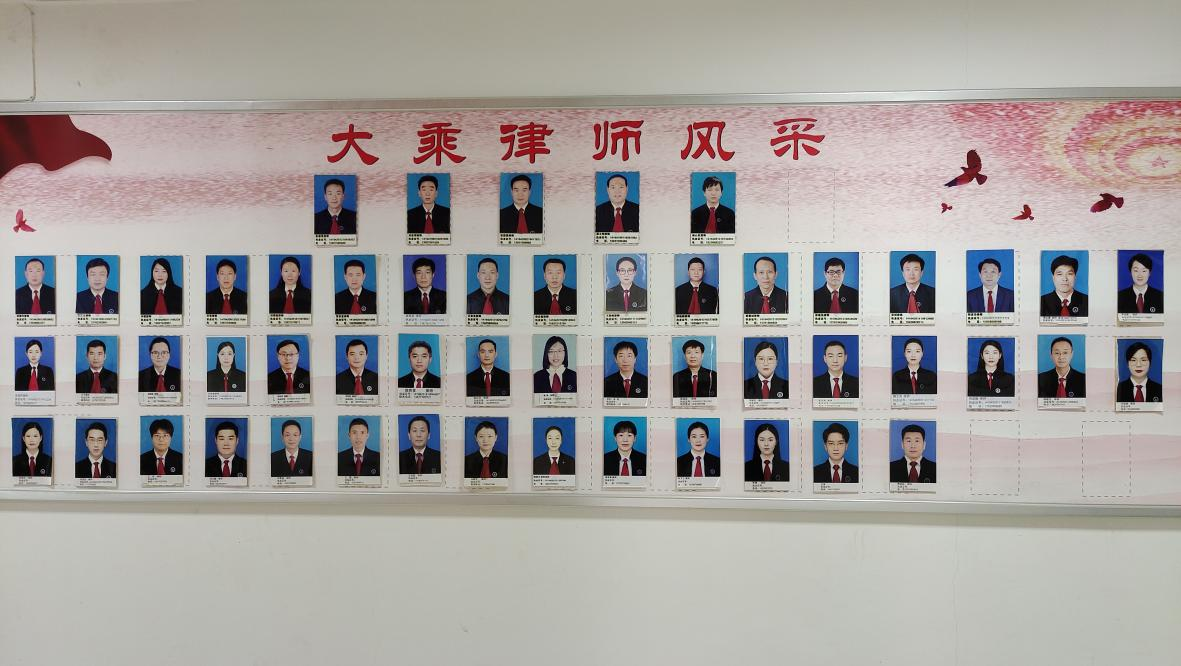 大乘律所现有执业律师52人,实习律师及辅助人员20余名;执业律师中,博士研究生1名,硕士研究生18名,全国优秀律师1名,市十佳律师4名、市优秀律师1名、市优秀青年律师2名、市公益律师1名、市优秀青年1名、市首届鹰城十大法治人物1名、市新长征突击手标兵1名、平顶山仲裁委员会仲裁员9名;部分律师拥有多学业经历。现河南大乘律师事务所担任平顶山市政府、国有大中型企业、平顶山银行等金融机构、中房集团等近100家企、事业单位的常年法律顾问。